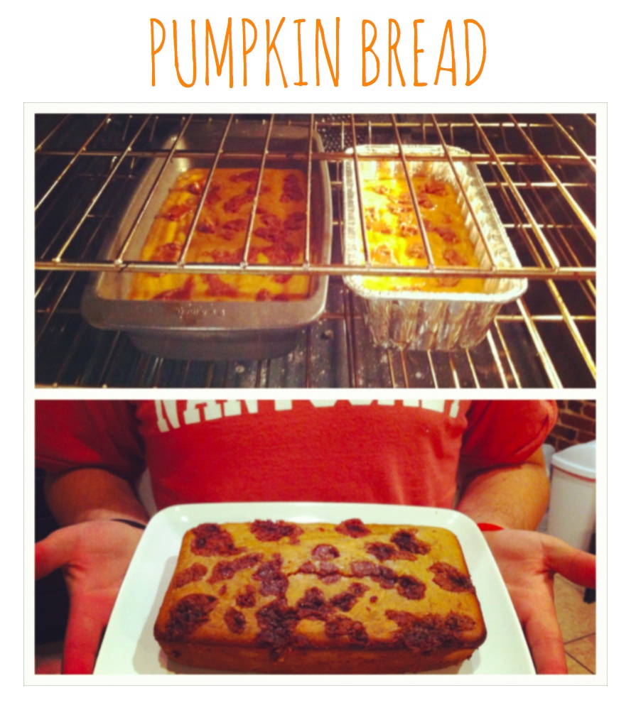 Still crawling out of your Halloween candy coma? Believe it or not this HungryTexan resisted most of the tricks and treats this Halloween season (save a few handfuls of ceremonious candy corn), but I couldn’t resist nibble after nibble of this perfectly punk-in-y loaf. Baked at the height of the hurricane, this Fall treat warmed the home, hearts & tummies of our house-full of hurricane refugees. OneSockWonder described it as, “Fit for a pum-king!”