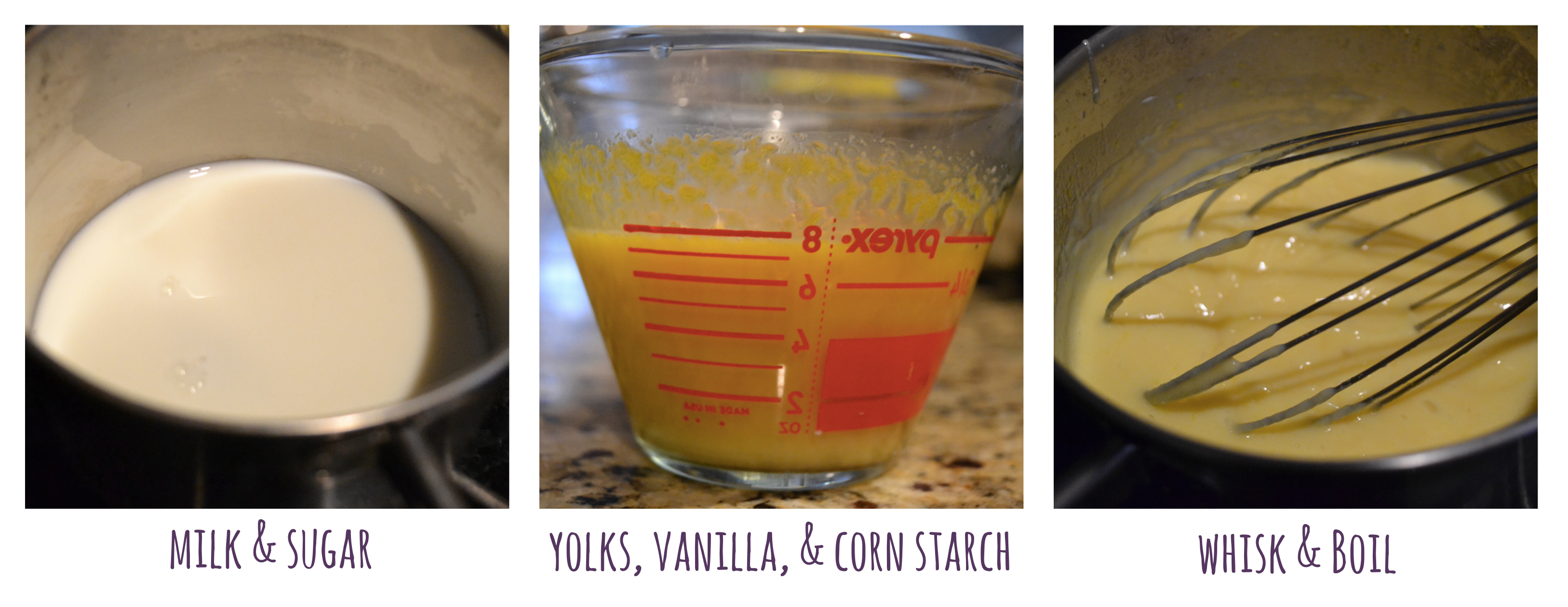 While your dough is proofing, make your filling. To make your cinnamon filling, start by combining your milk & sugar in a small saucepan. Stir rigorously to dissolve all the sugar. Once the milk & sugar mixture starts to boil, lower the heat slightly. Combine your cornstarch, vanilla, and egg yolks in a measuring cup & then add some of your warm milky mixture to the egg mixture (temper your eggs). Then, add your tempered eggs to the hot milk mixture, slightly elevate your heat, and continuously whisk your mixture until it begins to boil & the mixture resembles a thick custard. Remove custard from heat, cover & place in the fridge to chill. Once chilled, stir in cinnamon.