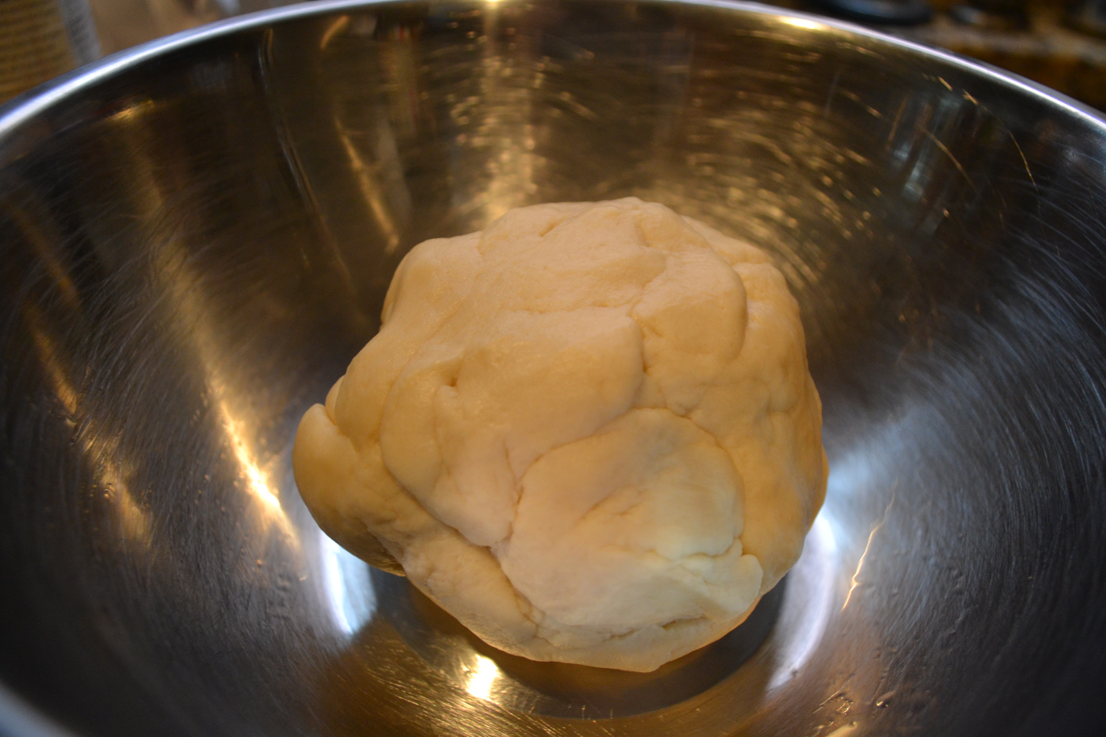 Start by making the dough. Combine all ingredients in the bowl of a stand mixer & mix for 15 whole minutes. I know this seems like a crazy long time, but alas! it works and your dough will be a silky ball after 15 whole minutes. Transplant your ball into a greased bowl covered with plastic wrap and leave to proof for ~2 hours. Note: your dough would be much happier proofing in an environment resembling the Gulf Coast (~80 – 90 degrees) than a drafty DC kitchen, but we made do!